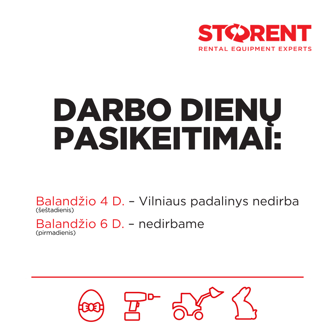 <h4 style="text-align:center;">Mieli klientai, prašome atkreipti dėmesį į darbo laiko pakeitimus per Velykas!</h4><figure class="image image_resized" style="width:75.94%;"><img style="aspect-ratio:1080/1080;" src="https://images.storent.com/pw-public/LT/cms/Darba laiks Storent (7).webp" width="1080" height="1080"></figure>